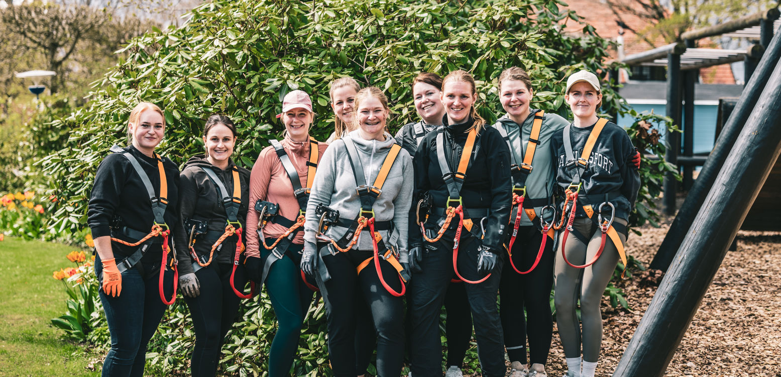 Er du på udkig efter en aktivitet, der virkelig vil sparke benene væk under den kommende brud eller brudgom og resten af gruppen? Så skal I slå jer løs i vores nye klatrepark, hvor I virkelig kan få sat gruppens dynamik og samarbejde på prøve. Det er en fed og sjov aktivitet, hvor I både får udfordret kroppen, jer selv og samarbejdet.
