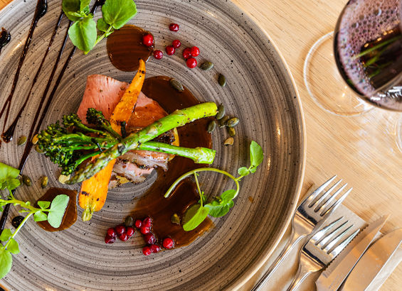 Vælg mellem retterne fra vores buffet i tre serveringer eller koncertmenu
