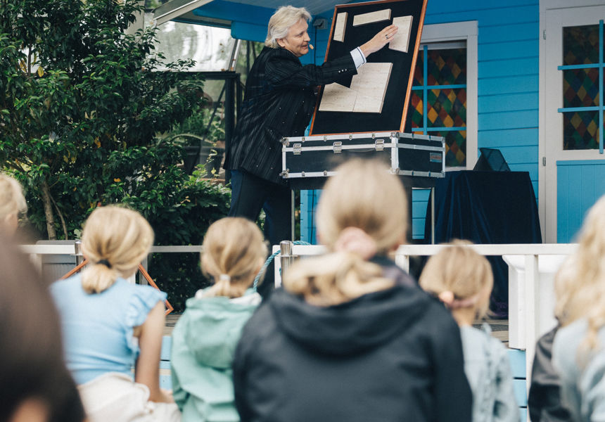 Derfor optræder vores dygtige kollega, Kim Kenneth, i løbet af sæsonen med sit helt eget trylleshow i Pjerrots Have gennem sæsonen for store og små gæster.